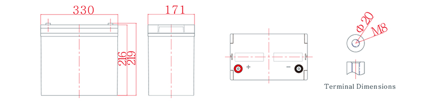 Kích thước: 330 (L) x 171 (Rộng) x 216 (H) x 219 (TH) Đơn vị: mm