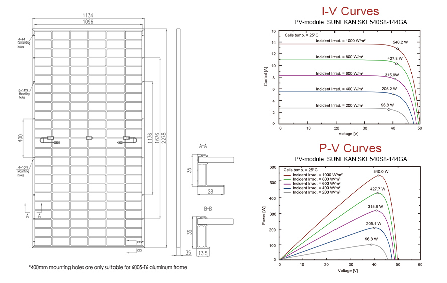 - tải trọng gió tuyệt vời 2400pa và tải trọng tuyết 5400pa theo phương pháp lắp đặt nhất định
