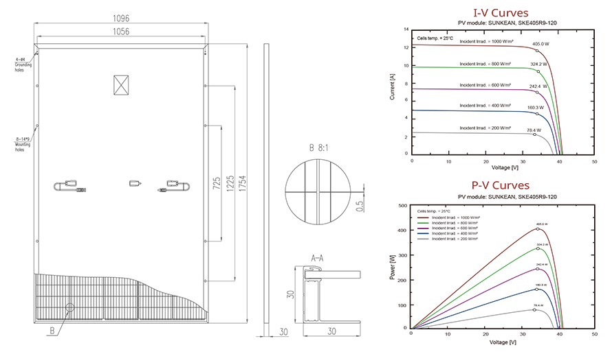 - tải trọng gió tuyệt vời 2400pa và tải trọng tuyết 5400pa theo phương pháp lắp đặt nhất định