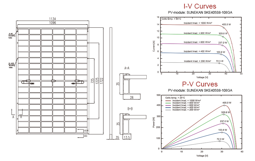 - tải trọng gió tuyệt vời 2400pa và tải trọng tuyết 5400pa theo phương pháp lắp đặt nhất định