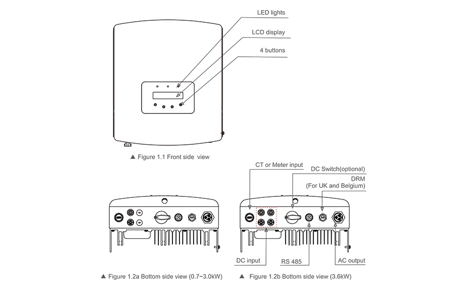 | khuyến nghị tối đa PV quyền lực | 0,9kW | 1,2kW | 1,8kW | 2,3kW | 3kW | 3,5kW | 4kW |