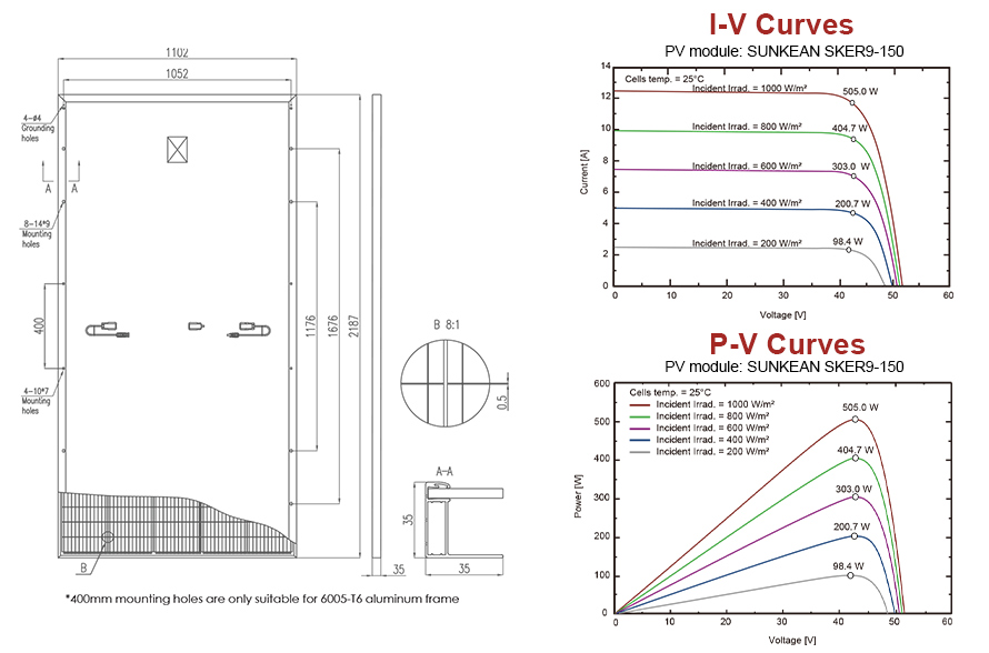 - tải trọng gió tuyệt vời 2400pa và tải trọng tuyết 5400pa theo phương pháp lắp đặt nhất định