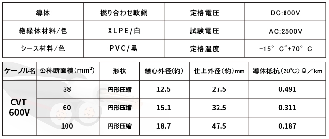 Cáp CVT (viết tắt của "cáp bọc nhựa vinyl cách điện bằng polyetylen liên kết ngang") là sản phẩm tiêu chuẩn JIS, là loại cáp CV một lõi được bện thành cáp điện, được sử dụng để truyền tải và phân phối tất cả nguồn điện, từ điện áp thấp. đến điện áp cao.