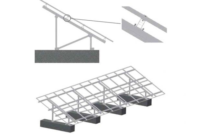 Điều quan trọng cần lưu ý là việc lắp đặt giá đỡ trên mái bằng khó hơn trên mái kiểu Châu Âu. Dầm đáy hình tam giác phải được lắp đặt trên tải trọng bê tông. Quá trình này yêu cầu lắp đặt dầm ngang trên giá đỡ hình tam giác. Lắp các nẹp chéo phía sau trên các giá đỡ dầm đáy hình tam giác và nối chúng với các dầm ngang bằng các giá đỡ nẹp chéo phía sau, được cố định bằng đinh tán M10x40 và nối với các dầm ngang bằng các miếng đệm di động.