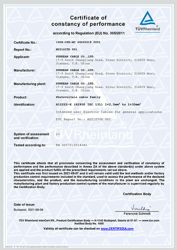 Chứng chỉ cáp năng lượng mặt trời CPR