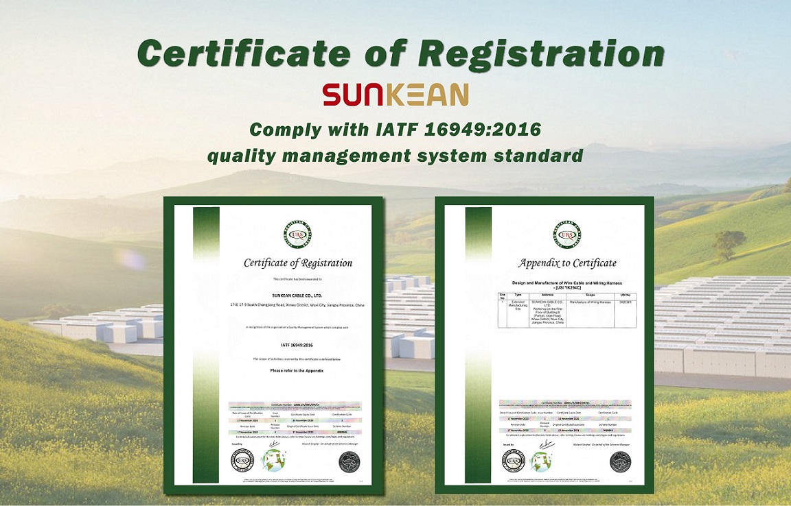 Chứng nhận IATF16949 là tiêu chuẩn hệ thống quản lý chất lượng được phát triển bởi Lực lượng Đặc nhiệm Ô tô Quốc tế (IATF) và đại diện cho tiêu chuẩn chất lượng cao nhất trong ngành công nghiệp ô tô trên toàn thế giới. Ngay sau khi giành được chứng chỉ cáp lưu trữ năng lượng TUV Rheinland phiên bản mới đầu tiên trên thế giới, SUNKEAN đã giành được chứng nhận IATF16949 và lại hết "Tốc độ SUNKEAN".