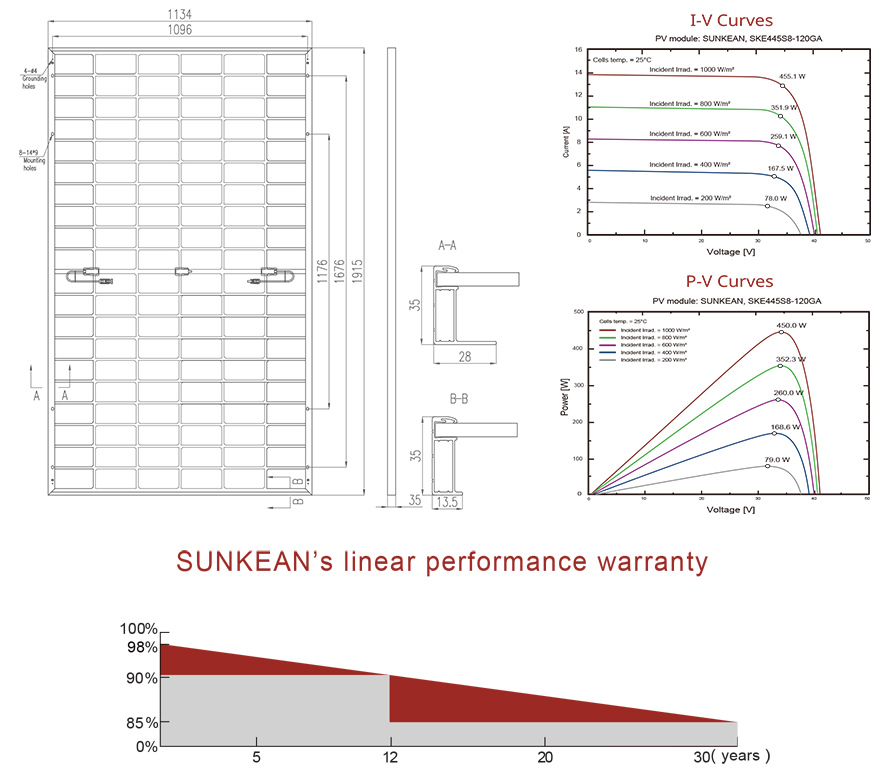 - tải trọng gió tuyệt vời 2400pa và tải trọng tuyết 5400pa theo phương pháp lắp đặt nhất định