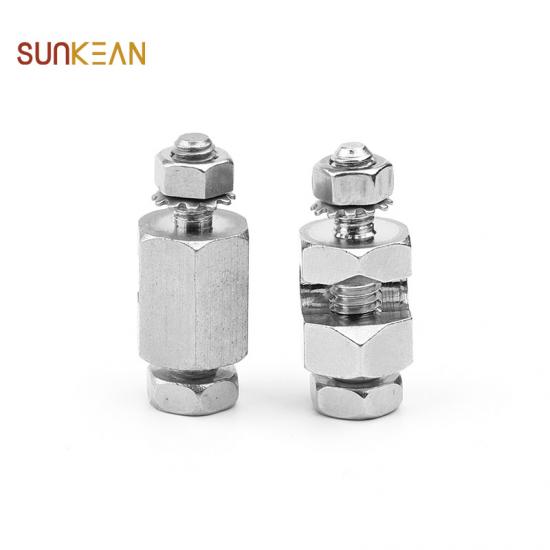 đầu nối tiếp đất này rút ngắn thời gian lắp đặt dây nối đất vào khung bảng điều khiển năng lượng mặt trời.đầu nối ren chèn qua một lỗ trên khung và sử dụng hai đai ốc lục giác để giúp cung cấp kết nối đáng tin cậy.trong kết nối với khung, thân đầu nối và đai ốc vòng đệm một mảnh xuyên qua bề mặt của khung nhôm giúp tạo ra một đường dẫn đất đáng tin cậy.đầu nối tiếp đất nạp lò xo có bện đồng giữa các miếng đệm hàm bằng đồng để có độ dẫn điện tối ưu.áp suất lò xo mạnh mẽ, có sẵn trong các phân cấp khác nhau.