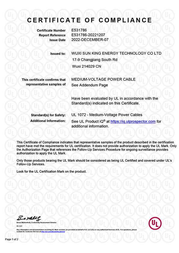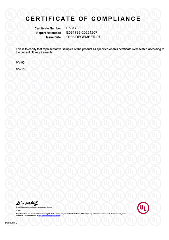 Giấy chứng nhận MV-90/105 Cbale UL1072