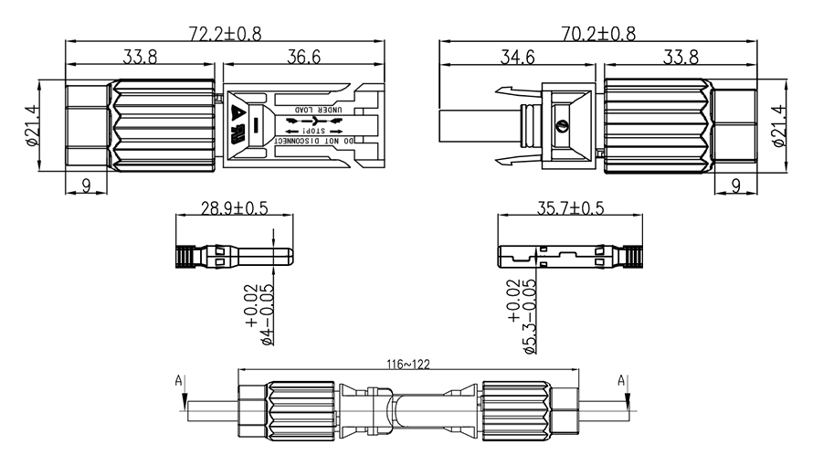 IP68 Đầu nối DC quang điện mặt trời không thấm nước Các khớp nối nam và nữ được chấp thuận bởi TUV, which có thể chứa cáp quang điện với cách điện khác nhau đường kính.