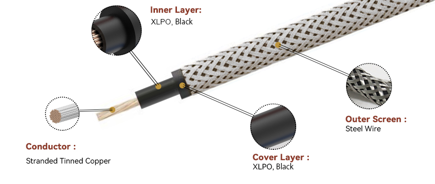 Tấm chắn bằng thép không gỉ Braid 6mm2 1500V H1Z2Z2-K có khả năng bảo vệ loài gặm nhấm Cáp PV năng lượng mặt trời