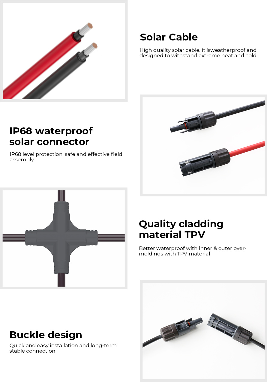 - Tương thích với các kích cỡ khác nhau của cáp PV thông thường